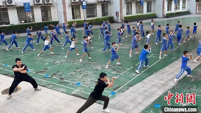 深圳市宝安区西乡小学的学生们在练习华林派武术操 西乡小学 供图