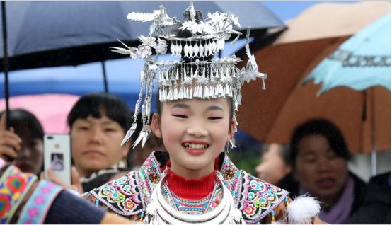 苗族头饰主要是以银饰为主。苗族女孩从学会走路开始,父母就会给女儿制作一套苗族民族盛装和头饰,苗族女孩一般6岁左右就可以参加每年的民族盛会,并且从小学习化妆技术。苗族的盛会主要集中在春节后,也叫坡会,就是山坡上的聚会,这一天苗族姑娘就会穿上珍藏已久的民族盛装,戴上头饰,把自己打扮的漂漂亮亮,参加芦笙踩堂舞,展示自己的美丽一面。