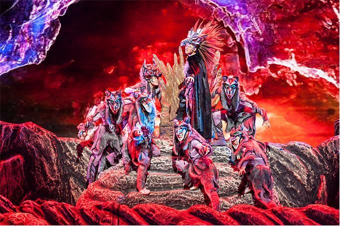 主创团队选取“贺兰山岩画”“岩羊”等宁夏独有的文化元素符号,以贺兰山岩画标志性的“太阳神”作为人物原型,以三个部落之间的结盟和冲突作为戏剧主线,准确地将岩画艺术与杂技艺术巧妙融合,使其成为既有浓郁地域文化特色,又有巨大时空张力,更有人类共同情怀的杂技剧。
