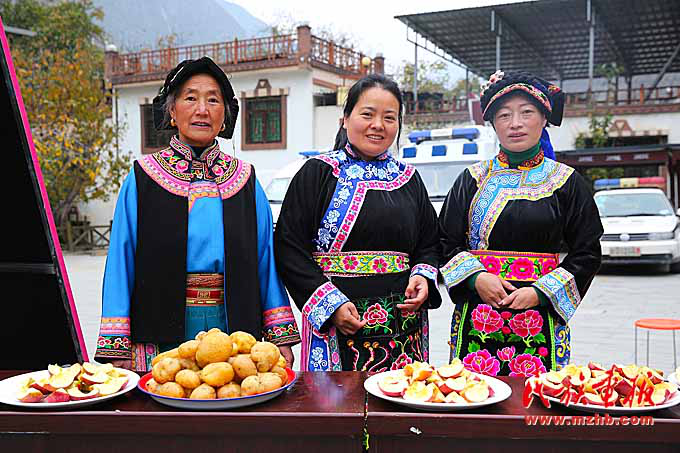 羌族群众自发提供当地土特产。