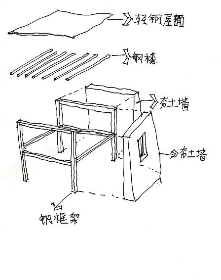 钢结构与夯土墙相结合(作者自绘)