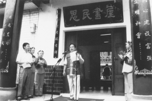 (题图为王思明(中)在“思民书屋”落成仪式现场。资料图片)