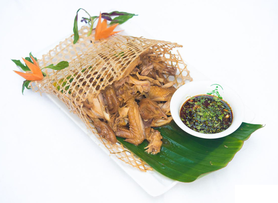 傣族传统风味菜肴,将牛肉经过腌制,而后炒制而成。特点是酸香味浓,可帮助消化。制法是将新鲜的黄牛肉用淘米水洗净,切成大片放入盆中,加入鲜花椒叶、盐、米饭拌匀,装入瓦罐,淋入白酒压实,上盖,用草木灰与泥巴合泥密封罐口,腌渍一个月即成。