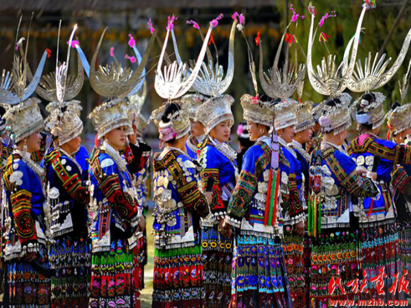 过苗年的时候,贵州苗族未婚少女穿戴起了体现家庭财富的银饰