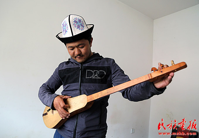 走进新疆克孜勒苏柯尔克孜自治州阿合奇县色帕巴依乡色帕巴依村,一排排房屋整齐有序,沿路花坛里开着叫不上名的花,蓝天映照下,颜色格外鲜艳。走进一间普通民居,一个柯尔克孜小伙儿正埋头打磨着一把木质乐器,这正是柯尔克孜族的传统乐器——库姆孜。房间里摆着一溜儿木质雕刻的半成品。