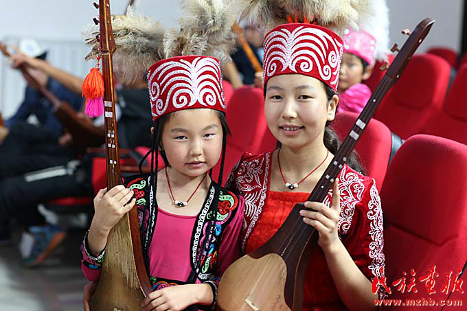 学弹库姆孜的柯尔克孜族两姐妹