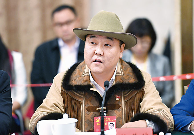 内蒙古自治区鄂温克族代表敖慧然在10月19日的讨论会上发言(内蒙古新闻网 供图)