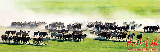 内蒙古自治区呼伦贝尔市鄂温克族自治旗是内蒙古东部的绿色净土,这块未被污染的宝地上万马奔腾(鄂温克族自治旗摄影协会 供图)