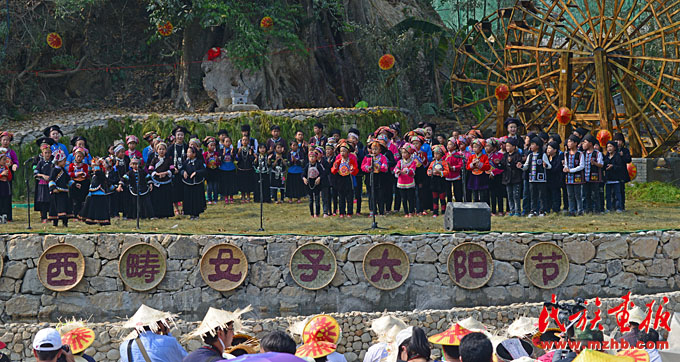 女子太阳节上孩子们演唱壮族童谣(吕德仁 摄影)