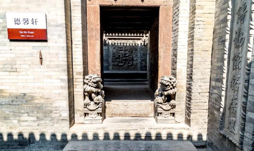 正厅大门之上的门楣,是一块精美绝伦的木雕,采用雕、嵌、描、绘等多种装饰技法,将喜鹊闹春的场景表达得惟妙惟肖,具有极高的艺术价值;除了雕刻着代表中国传统文化精神的梅兰竹菊外,许多地方的门窗,尤其是专供男孩子们读书的庭院中的窗子,都雕成简洁古朴的书本或折扇的形状,表达了“万般皆下品,唯有读书高”的文化追求。