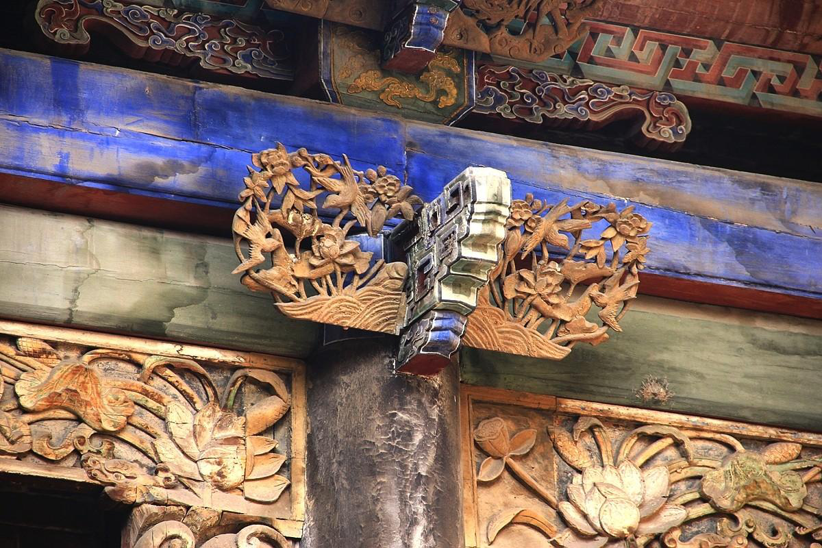 王家大院的砖雕、木雕、石雕,采用圆雕、浮雕、镂雕等多种手法,运用各种象征、隐喻、谐音,甚至禁忌的艺术形式,雕刻题材丰富、技法娴熟,体现了清代建筑装饰的风格,将儒、道、佛思想与传统民俗文化凝为一体。