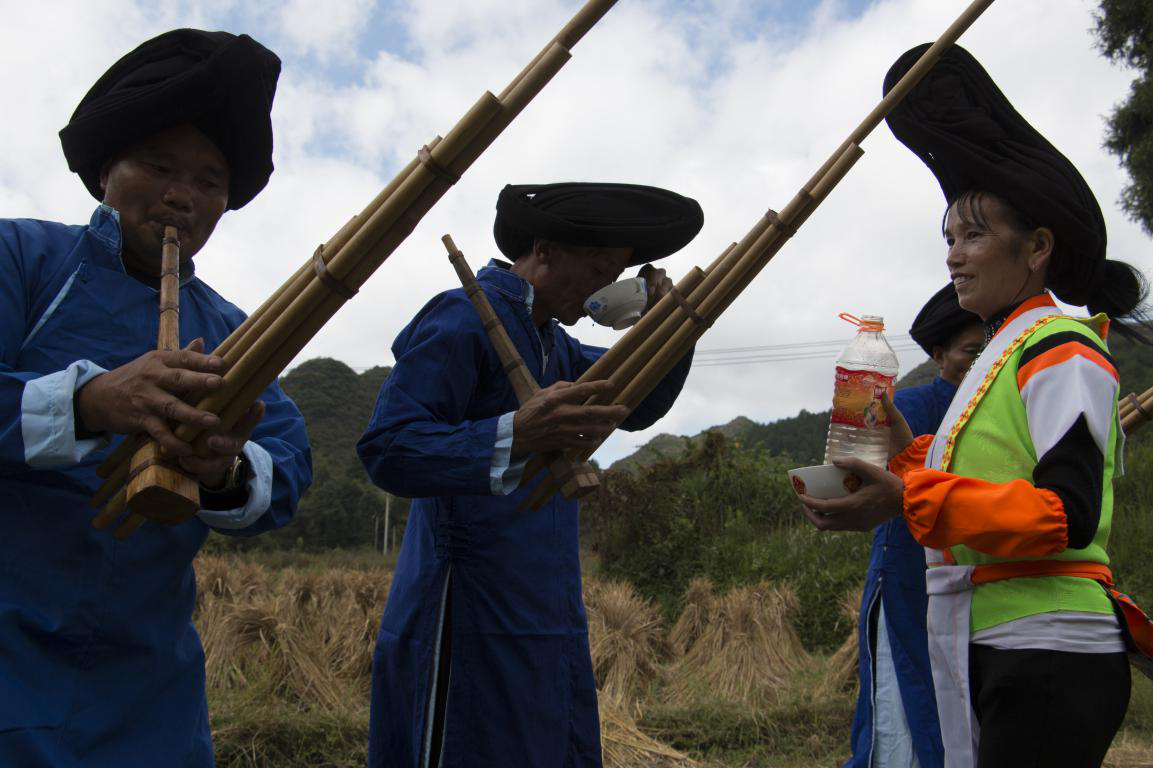 批林村芦笙曲不限定地点,只要芦笙响起,田间地头,都可以起跳。芦笙曲曲调深沉而又悠扬,配着蓝天白云,稻草风香,整体舞蹈与天地相合,令人沉浸其中。