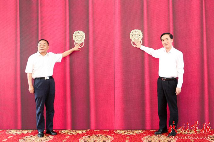 国家民委副主任李昌平,河南省人民政府副省长、运动会筹委会副主任戴柏华共同启动运动会官方网站上线