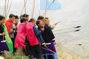 仪式当天,各家各户的父母给自家的孩子穿上新装;孩子们则削木为刀,编草为穗,插玉米芯做矛头,剥玉米皮当缨枪,用竹篮背着用麻籽和燕麦炒制的干粮,从四面八方赶来,聚集在一起。