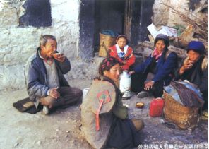 外出活动人们聚在一起喝酥油茶