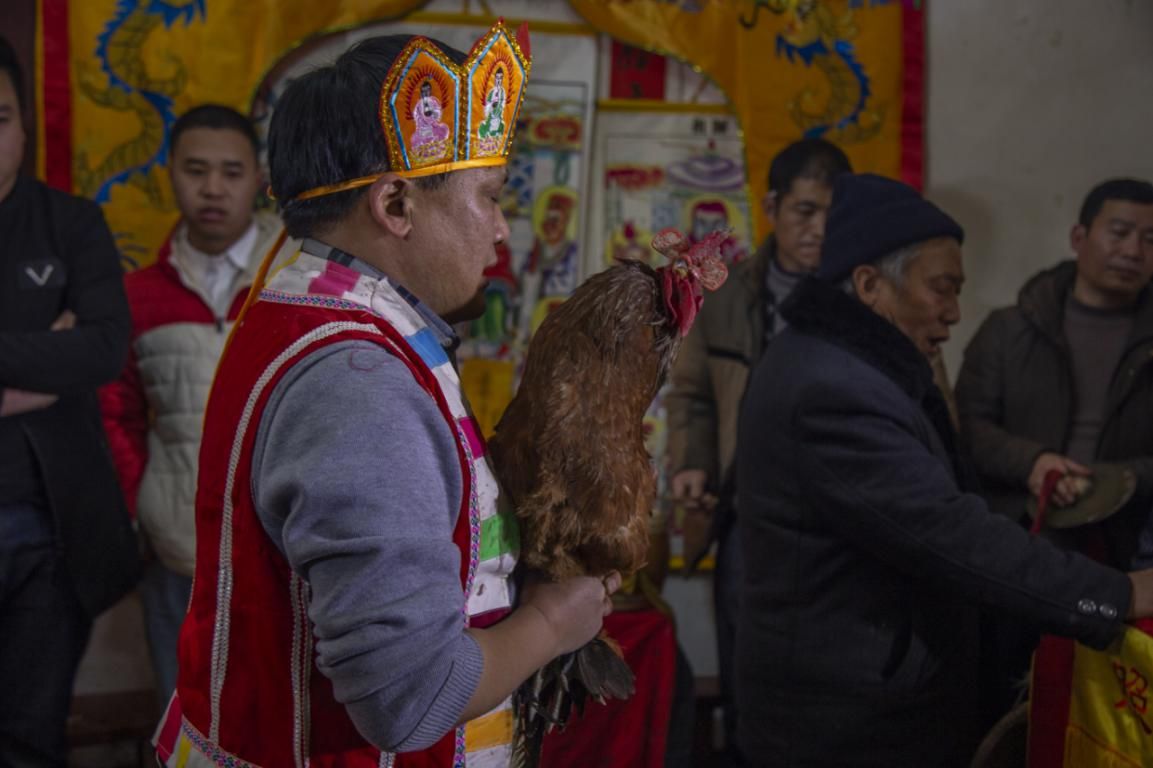 发牒还需使用鸡冠之血,祭左边三观,右边历代祖师,中间总尊以及供桌下面的五猖,将鸡血和鸡毛贴在神案五猖神牌上和文书上。