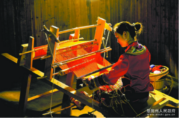 土家织锦历史悠久,源远流长。从秦至西汉,土家先民的纺织业逐渐发展,所织的“布”已成为纳贡之名品。到元明清时期,“西兰卡普”已被称为“土锦”“花布”,并大量用于服饰,《大明一统志》载:“土民喜服五色斑衣”;清同治本《来凤县志》也有关于“西兰卡普”的记载:“……染各色棉纱为经纬,斑然可爱”。