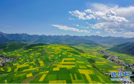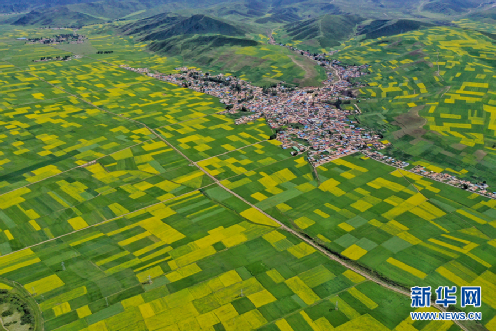 航拍门源县油菜花海。新华网 宋忠勇 摄
