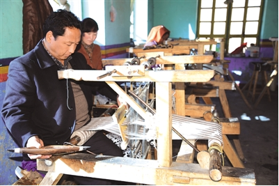 巴桑正在为学徒教授哔叽手工编织技艺。李文健 摄