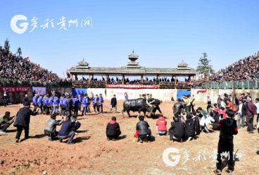 贵州省从江县第十五届原生态侗族大歌节的前一天,恰逢该县逢亥斗牛日,丙妹镇松学斗牛塘、谷坪乡四寨河斗牛...