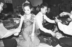 2013年11月19日,在人们“水——水——水——”的祝福声中,汉族小伙子戴龙与傣族姑娘玉金喜结良缘...