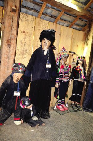 小楼不算亮堂,却处处透着一股浓郁的哈尼族生活气息。哈尼族先民们曾使用的纺线机、织布机、竹编的背篓、色彩艳丽的传统服饰……每一件物品都展示了哈尼人的心灵手巧和聪明才智。