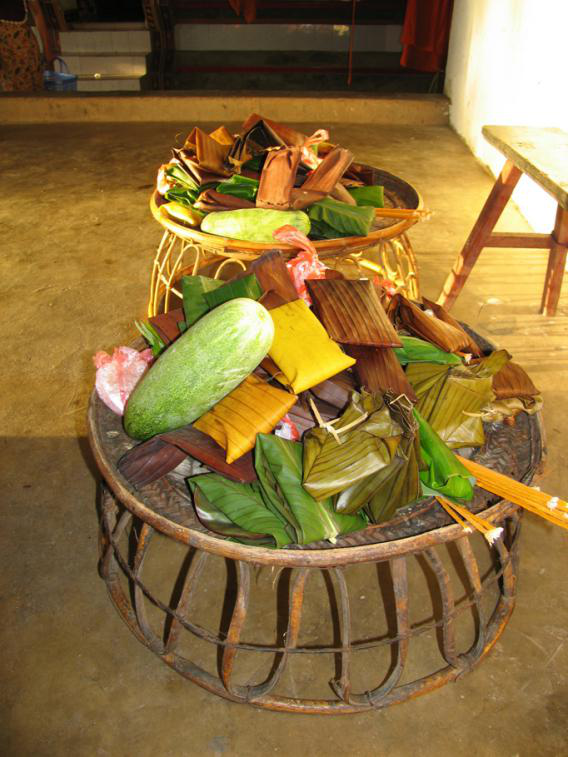 外出劳动者常在野外用餐,用芭蕉叶或饭盒盛一团糯米饭,随带盐巴、辣子、酸肉、烧鸡、喃咪(傣语,意为酱)、青苔松相伴进食。