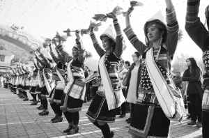 2014年2月6日,云南西双版纳傣族自治州景洪市基诺山乡人头攒动,欢声笑语。来自四面八方的宾客云集在大鼓舞广场,与基诺族同胞一起欢度“特懋克”节。