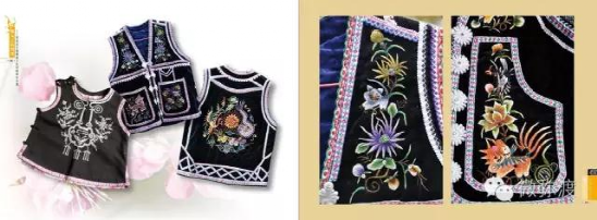 而现存的娃娃服饰有聪明鞋、虎头帽。其中,以聪明鞋较为常见。孩子满周岁时,母亲总会给孩子准备一双绣有葱苗和花朵的“聪明鞋”。据传,穿过聪明鞋的孩子会更加聪明伶俐,并像葱苗一样快快长大。在娃娃服饰中,配饰有项圈、百家锁、手锣、脚链、扣饰、帽饰等,多系银器所制。帽饰也有用玉器者,其形状多为玉罗汉、玉观音等小件。