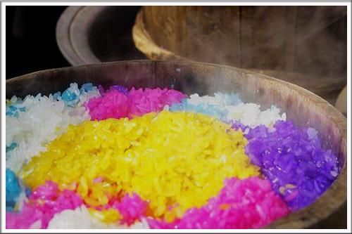 (图注:祭牛节的五色糯米饭)