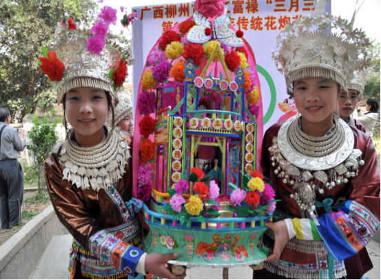 花炮节是广西三江境内各民族共同欢度的盛大传统节日,已有数百年的历史。举行花炮节的日子因地而异。程阳花炮节在农历正月初七;林溪花炮节在农历十月二十六;斗江花炮节在农历二月十五;梅林花炮节在农历二月初三;丹洲花炮节在农历二月初二;古宜、富禄花炮节在农历三月初三。三月三花炮节是各地花炮节中规模最大的。在节日里,以抢花炮为主要内容,兼有民歌演唱、芦笙舞表演、侗戏、彩调演出、放排炮、踩歌堂等多种多样群众性的传统文化活动,同时也是各地侗、汉、苗、瑶、壮等民族进行贸易和物资交流的盛会。