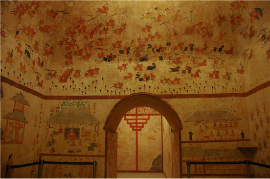 和林格尔东汉壁画墓复原陈列展。位于和林格尔县新店子镇的小板申东汉“使持节护乌桓校尉”壁画墓,是秦汉文化的主要标志性实物,是东汉庄园制度的真实再现,也是民族团结的重要历史见证。本馆以1:1.5的比例进行了复制并展示给观众。