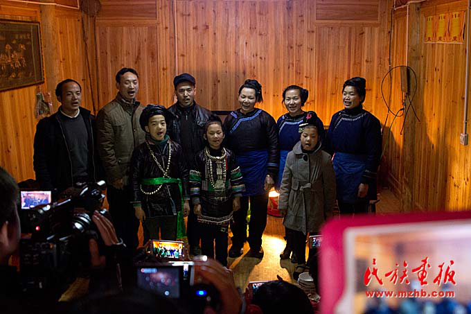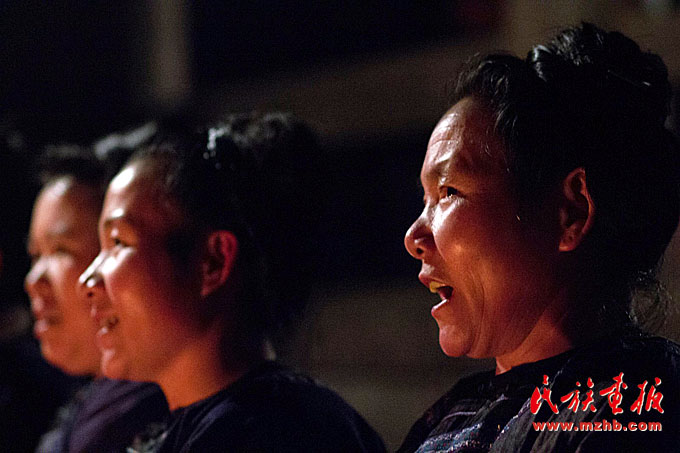 在坐满了学生的教室里,胡官美耐心地先把歌词用侗语一遍一遍地教他们,等到大家把歌词记牢了,再开始把唱歌的调儿教给孩子们。这首快乐的儿歌是孩子们最喜欢的歌,在鼓楼、在上学路上、在火塘旁、在舞台中央,他们开心地齐声大唱。歌声里,年过六旬的胡官美仿佛又回到了童年。年复一年的歌声里,胡老师送走了五批合唱团的学员,共130余名。除了胡老师自己,她的大女儿杨秀珠和大女婿杨秀豪也都在合唱团担任民族音乐老师。
