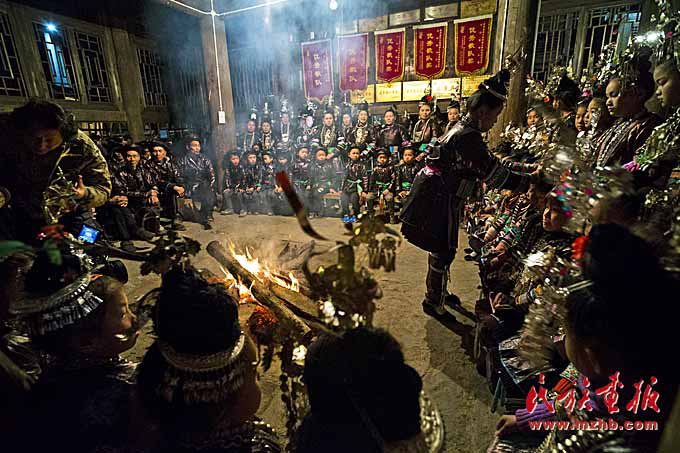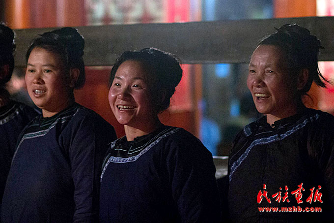 “我三岁开始唱歌,大概能唱300多首。对歌能唱几天几夜。”在客栈的灶台前,穿着藏青侗装,头发盘得高高的胡官美放下手里的腌鱼,笑盈盈地说。胡官美是侗族的“歌师”,负责给侗族人教唱歌。“饭养人,歌养心”,在把“歌”视为与“饭”同等重要的侗族地区,歌,是精神食粮,陶冶心灵和情操。他们视歌为宝,认为歌就是知识,就是文化,谁掌握的歌多,谁就是有知识的人。在侗寨,“歌师”被公认是最有知识、最懂道理之人,深受侗族人尊重。除了具备领唱本事外,“歌师”还要懂得唱歌的规律,能控制声调的协调,要深研至少200首以上歌曲,熟练掌握6种类型的侗族大歌唱法和音调才可胜任,要成为一个侗族歌师着实不易。