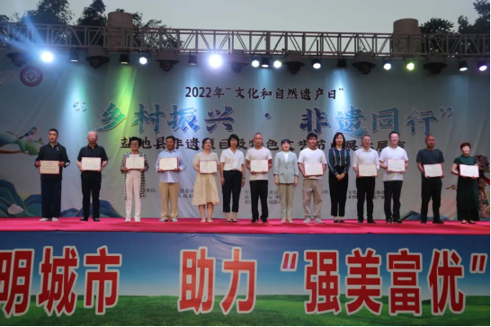 演出开始前公布了第四批县级非物质文化遗产代表性项目及第三批盐池县级非物质文化遗产代表性传承人名录,并为代表性项目和传承人颁发牌匾及证书。