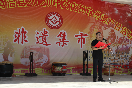 自治区非物质文化遗产保护中心朱凤立书记击锣宣布“非遗集市”开市