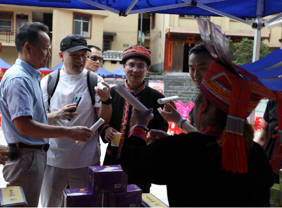 活动当日还邀请我县两家企业参加“非遗购物节”,分别是金秀瑶族自治县瑶山源养生堂有限公司、黄泥鼓文创工作室参加淘宝天猫聚划算平台非遗购物节,参加线上销售的商品有:瑶族药浴(泡澡药包、泡脚药包、袋用茶)、黄泥鼓酒杯、茶杯。推选1个商家参加“非遗购物节”线下启动仪式。