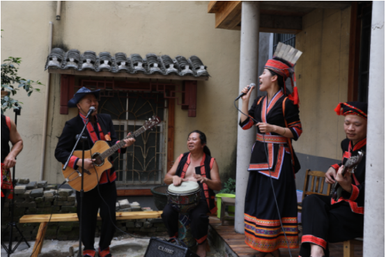 瑶族民间乐团——七彩乡音全天候为游客演唱用瑶族传统音乐元素创作的歌曲