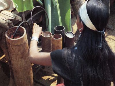 图片说明:佤族竹筒制水酒